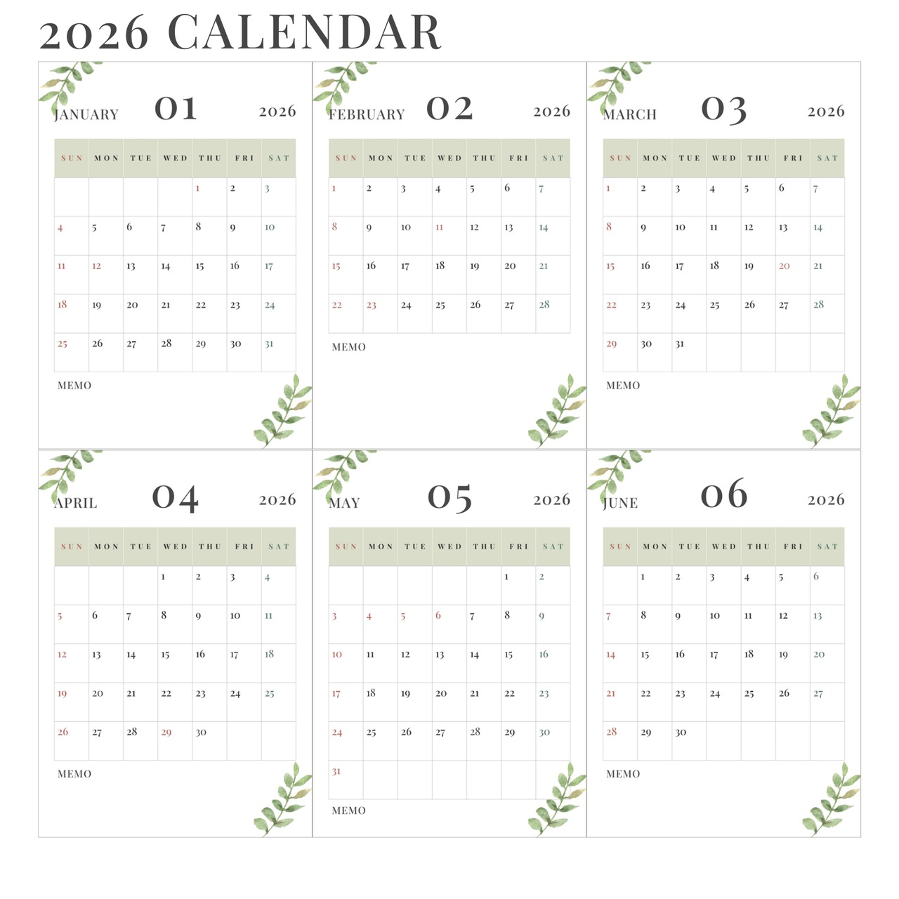 ・2026年1月〜12月(全12ページ)